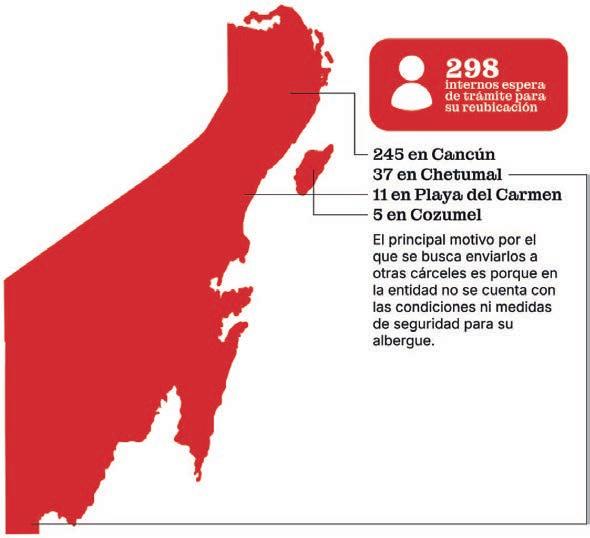 ADEMÁS de la falta de capacidad para prisioneros de alto riesgo, las correccionales han rebasado su cupo de 2,695 internos, al tener una población actual de 3,692. El Cereso de Benito Juárez lidera con 1,979 presidiarios.- (POR ESTO!)