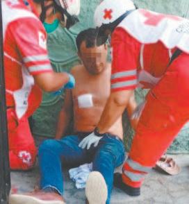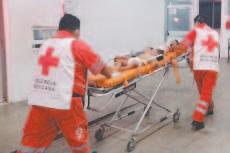 cuados lesionados en un hospital, uno de los cuales estaba cubierto de sangre y fue llevado en camilla hacia la sala de emergencias.