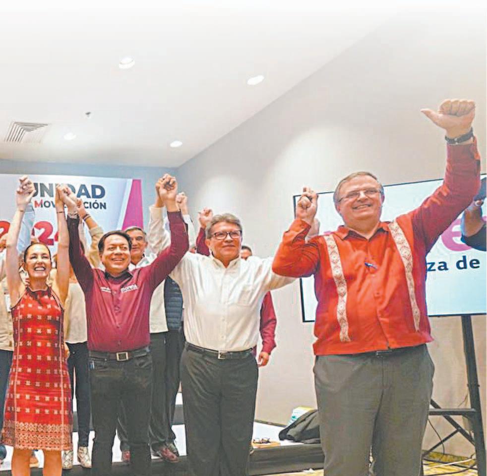 En ese sentido, la jefa de Gobierno de la Ciudad de México, Claudia Sheinbaum Pardo; el canciller, Marcelo Ebrard Casaubon; el secretario de Gobernación, Adán Augusto López Hernández, y el coordinador de senadores de Morena, Ricardo Monreal Ávila, firmaron el acuerdo que da inicio al proceso de elección.