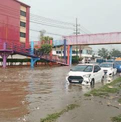 ciones del Periférico Norte. La precipitación pluvial también afectó la circulación en la Vía José López Portillo, al rebasar el agua el nivel de banqueta, a la altura de la