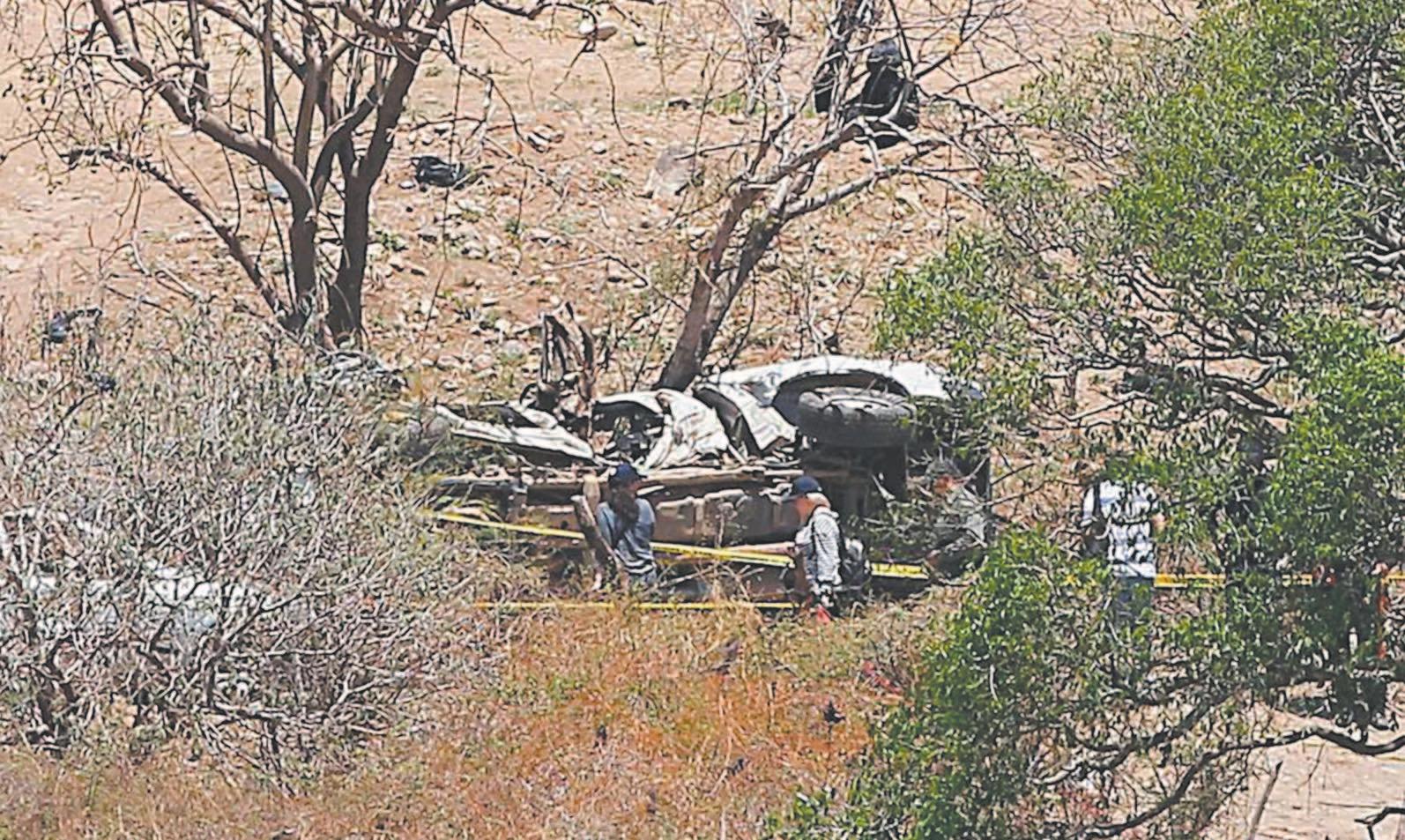 AUTORIDADES federales y estatales investigan quiénes son los responsables del ataque; tres de los fallecidos eran integrantes de la Fiscalía, otro era policía y los dos restantes, civiles que pasaban por la zona.- (EFE)