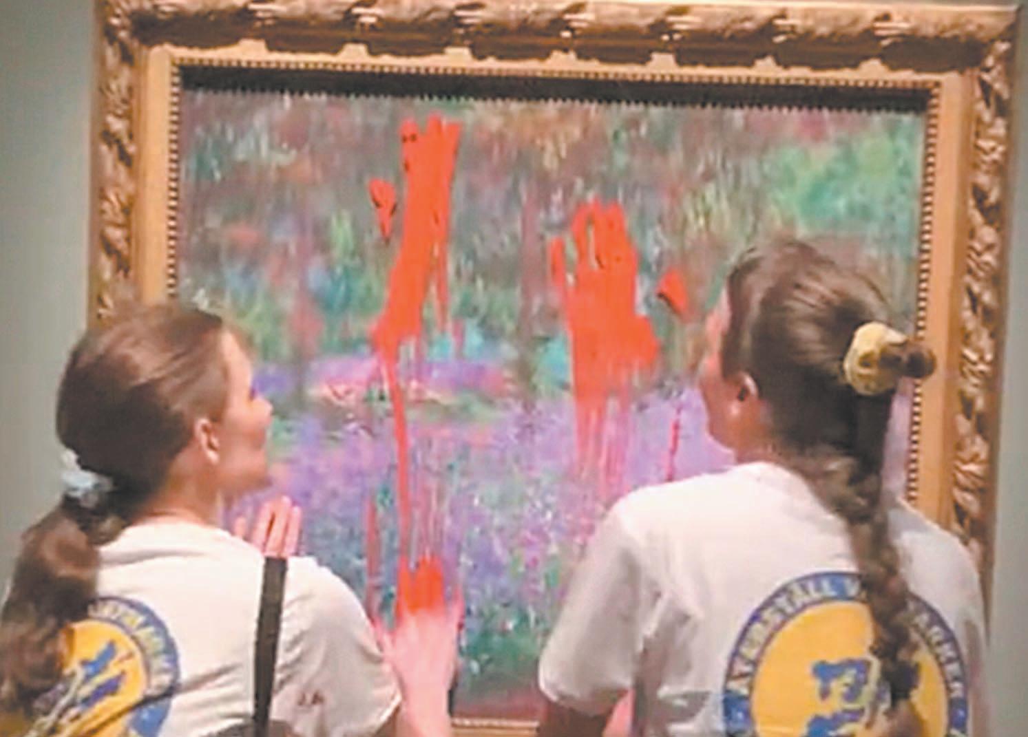 Dos mujeres fueron detenidas en Estocolmo después de arrojar “algún tipo de pintura” a una obra del artista francés Claude Monet y luego usaron pegamento para adherirse al marco, informó ayer el Museo Nacional de Suecia.