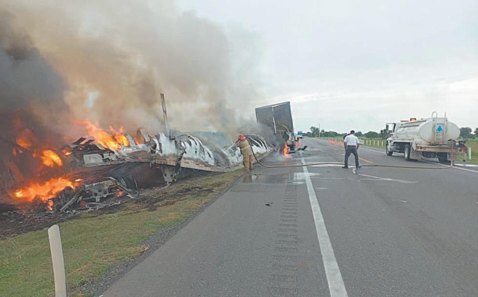 El fuerte choque en Tamaulipas dejó como resultado víctimas fatales todavía no identifi cadas por parte de las autoridades estatales, además de imágenes fuertes respecto a la magnitud del incendio, el cual provocó que las primeras unidades de emergencia solicitaran auxilio de la Protección Civil del Estado.