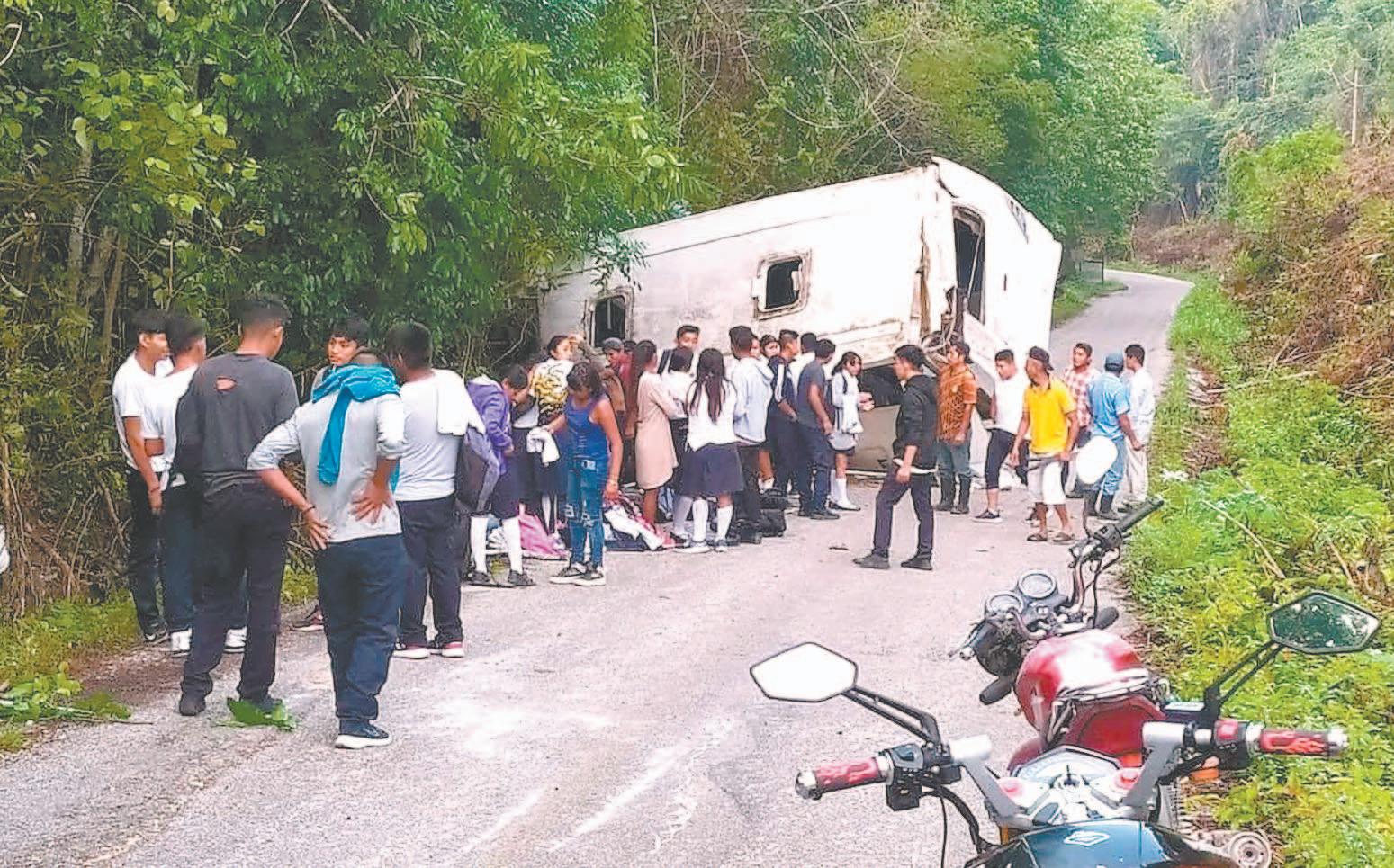 Vuelca camión escolar al quedarse sin frenos en una pendiente, en los límites entre Quintana Roo y Campeche; hay 6 alumnos lesionados / Denuncian represalias, trabajadores de Vectores que acusaron carencias en el departamento de la Sesa desde abril / Ejecutan en Cancún a un presunto usurero; en Playa del Carmen, asesinan a tiros a una personas en un taller Policía 22, 23 y 24 / Ciudad 15