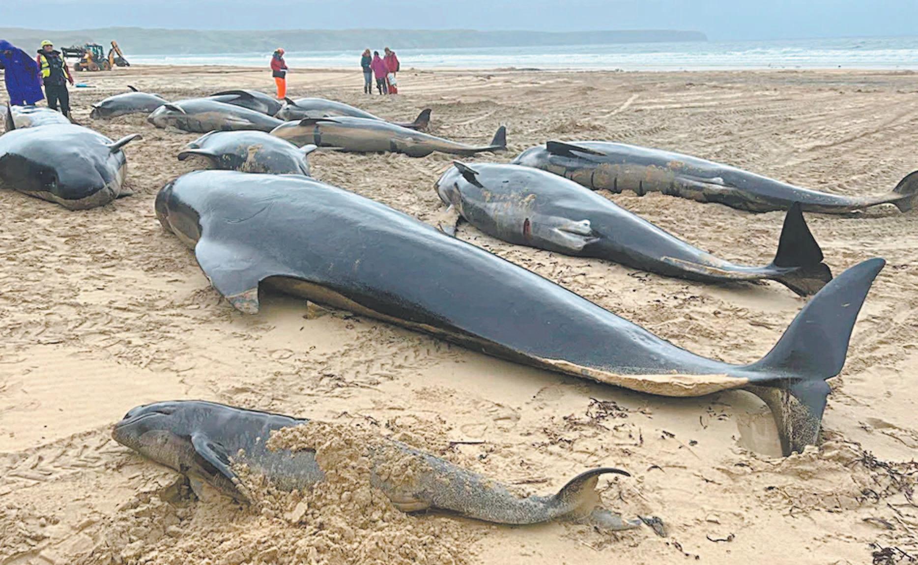 Una manada de 55 ballenas piloto murió luego de ser arrastrada a la costa en Escocia, el peor varamiento masivo de estos cétaceos en el área, informaron ayer expertos marinos.