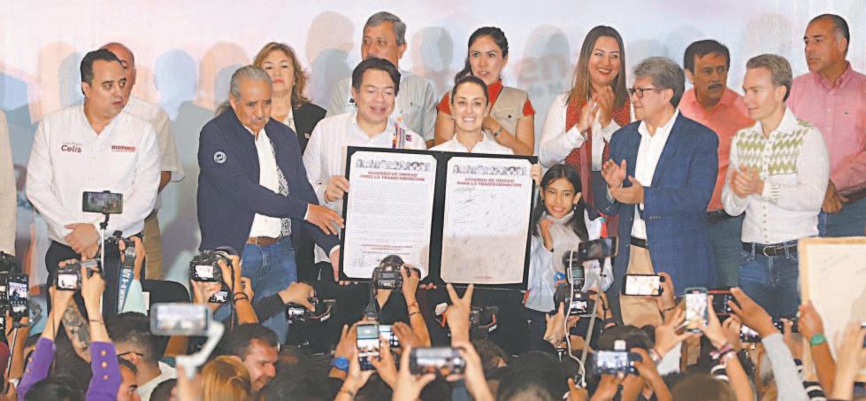 CIUDAD DE MÉXICO.- La coordinadora de los Comités de Defensa de la 4T, Claudia Sheinbaum Pardo, firmó ayer el Acuerdo de Unidad para la Transformación y llamó a la población a no dar ningún paso para atrás en la transformación del país ni regresar al pasado, porque el objetivo es que Morena y aliados ganen las elecciones federales del 2024.