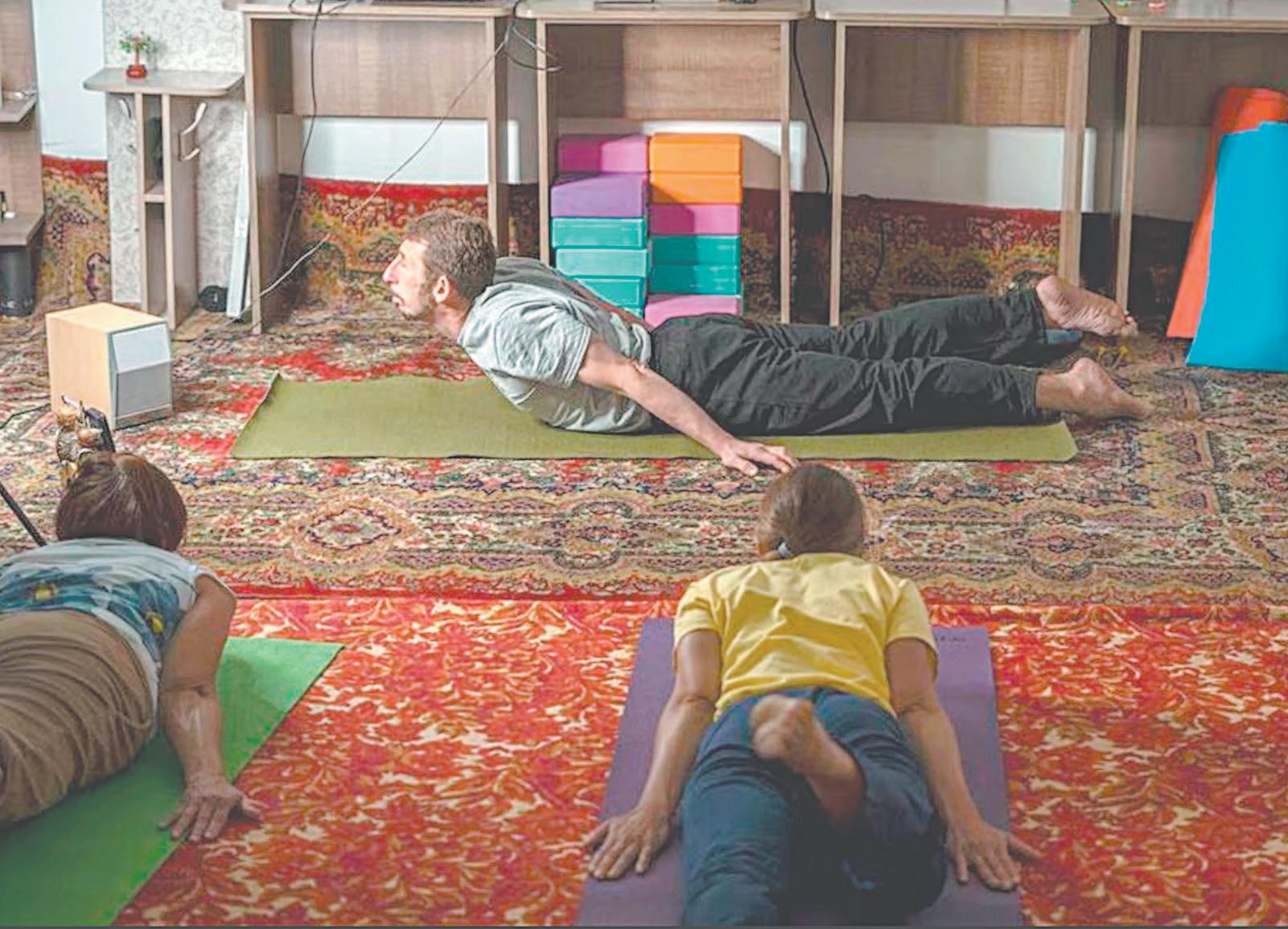 “Nos desconectamos del mundo exterior”, dice con voz serena Serhii Zaloznyi, un instructor de yoga de 52 años. Lentamente dirige a las personas a un estado de meditación.