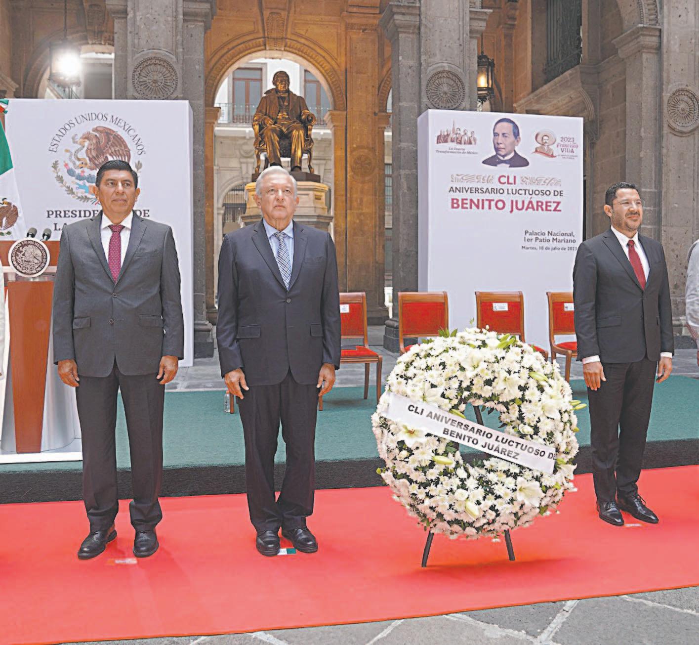 EN la ceremonia cívica, Andrés Manuel López Obrador encabezó una guardia de honor y presentó una ofrenda floral al Presidente zapoteco, cuyos principios e ideales inspiran al Gobierno de la Cuarta Transformación.- (POR ESTO!)