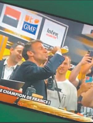 El presidente francés, Emmanuel Macron, mostró que es un buen bebedor y qué mejor forma de hacerlo que con una Corona Tras la victoria del Toulouse en la final del Top 14 de rugby, el sábado, Macron llegó al vestuario para felicitar a los jugadores y unirse a la celebración.