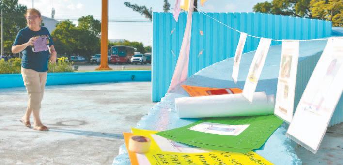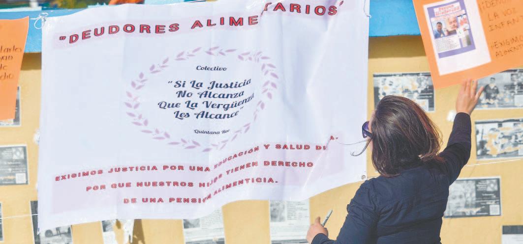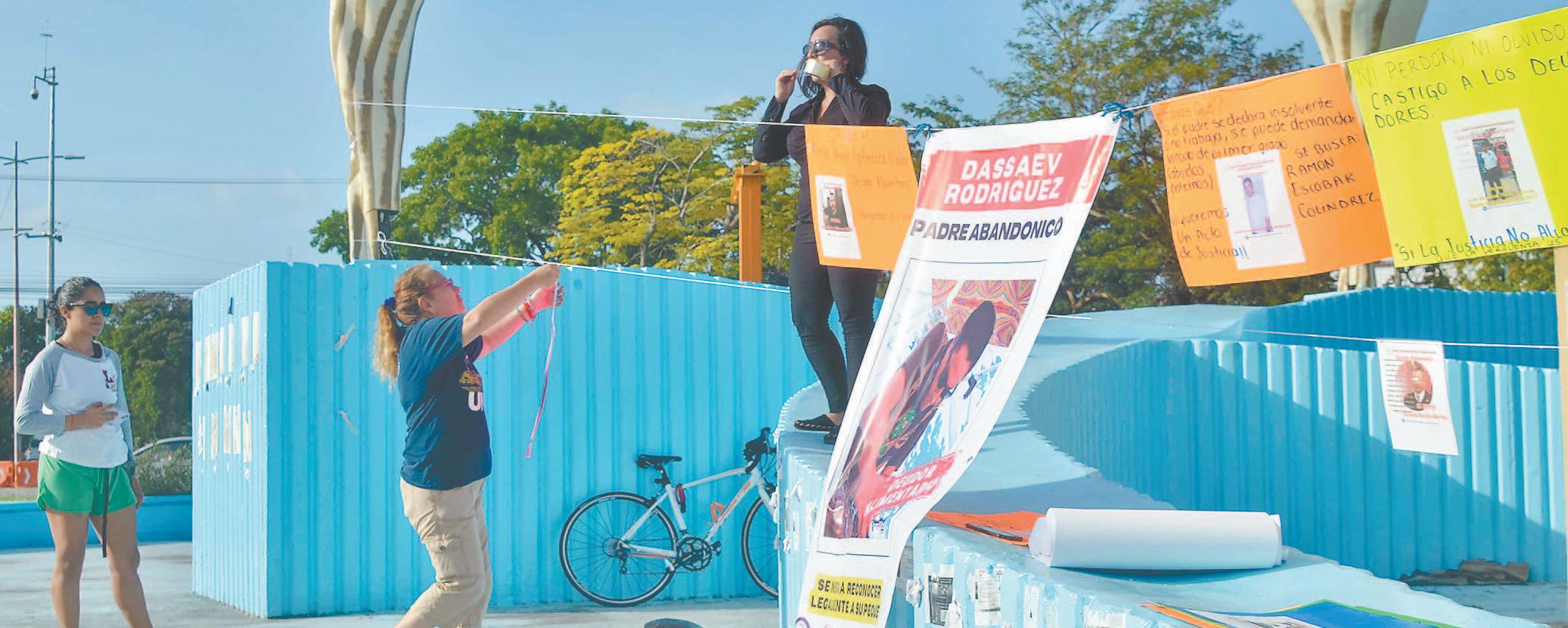 LA fuente sirvió de escenario para el “tendedero” donde se expuso a los incumplidos con la manutención de sus hijos.- (Mario Hernández)