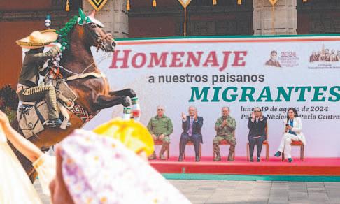Obrador encabezó el homenaje a la población migrante mexicana, que consistió en un concierto de música regional acompañado de danzas tradicionales de entidades federativas que registran mayor presencia de connacionales en Estados Unidos. (Agencias)