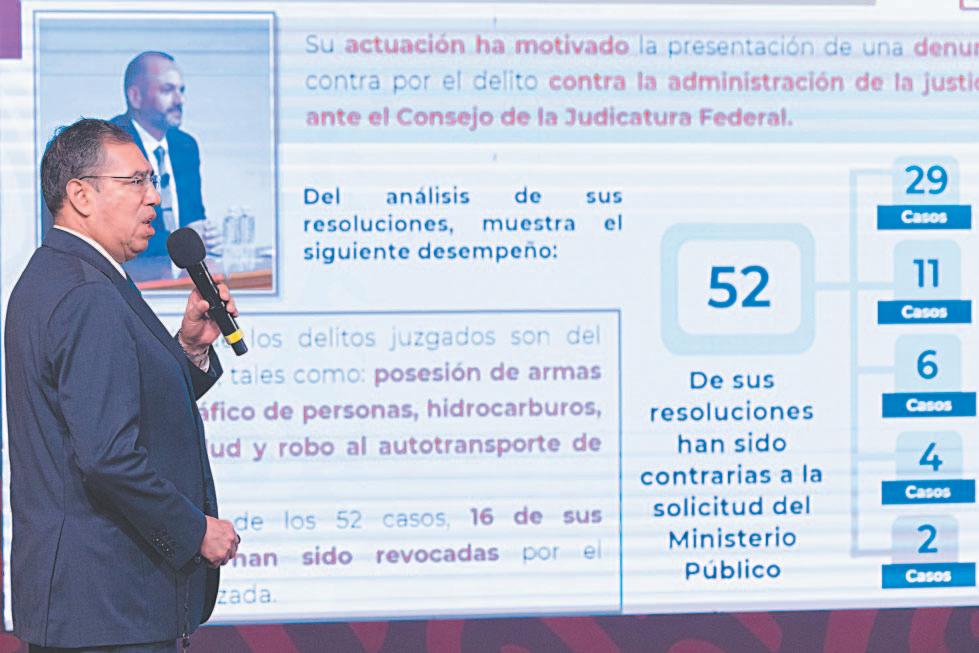 ANTE el Presidente, Luis Rodríguez Bucio, subsecretario de Seguridad Pública, aseguró que hay casos de juzgadores que han liberado a asesinos y secuestradores, como los del hijo de Javier Sicilia. AMLO señaló que hay un togado que “ha archivado” por ocho meses el caso de una empresa que debe al fisco 25 mil millones de pesos.- (POR ESTO!)