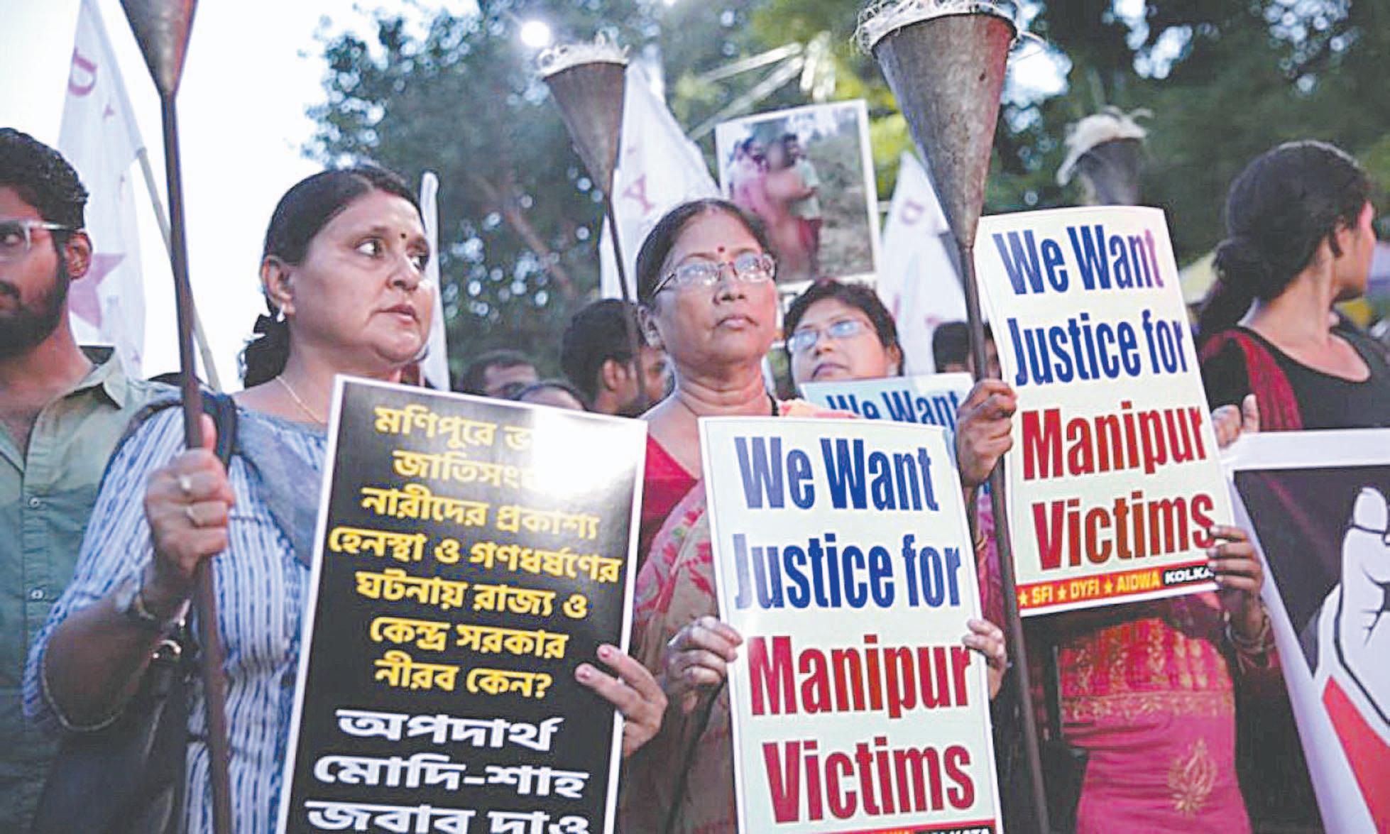 NUEVA DELHI.- Miles de personas, en su mayoría mujeres, llevaron a cabo ayer una protesta en Manipur, Estado nororiental de la India sacudido por la violencia, para exigir la detención inmediata de los implicados en las terribles agresiones colectivas a dos mujeres que fueron exhibidas desnudas. Líderes religiosos y de organizaciones de mujeres se dirigieron a cerca de 15 mil manifestantes, que también pidieron la destitución de Biren Singh, máximo cargo electo del Estado, donde han muerto más de 130 personas desde que estalló la violencia entre dos grupos étnicos dominantes a principios de mayo. La protesta se celebró en Churachandpur, ciudad situada 65 kilómetros al Sur de Imphal, la capital del Estado. Un video que muestra las agresiones a las mujeres provocó una indignación masiva y fue ampliamente compartido en las redes sociales a última hora del miércoles, a pesar de que el Internet está bloqueado en su mayor parte y los periodistas no pueden acceder al remoto Estado. Las imágenes muestran a dos mujeres desnudas rodeadas por decenas de jóvenes que les manosean los genitales y las arrastran a un campo.