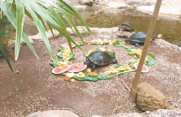 Con paletas de hielo frutales refrescan a animales del zoológico