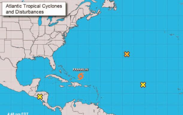 Según los pronósticos, Franklin adquirirá fuerza de huracán en los próximos días, pero lejos de tierra.