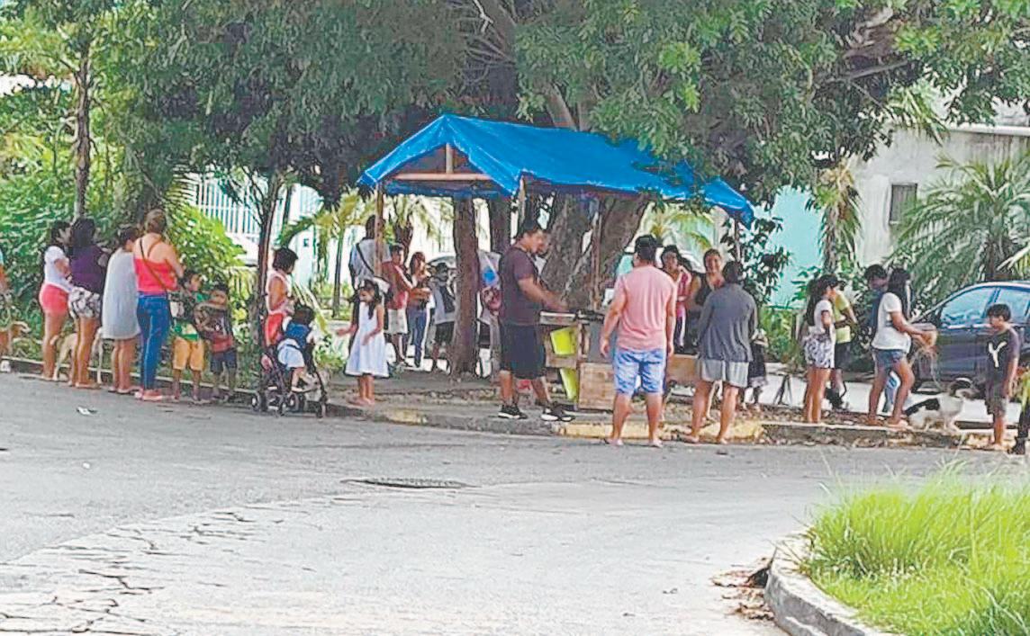 La mujer preparaba arroz con salchicha en una improvisada fogata, aprovechando que sus tres menores hijos duermen sobre unos cartones bajo la sombra de un árbol.