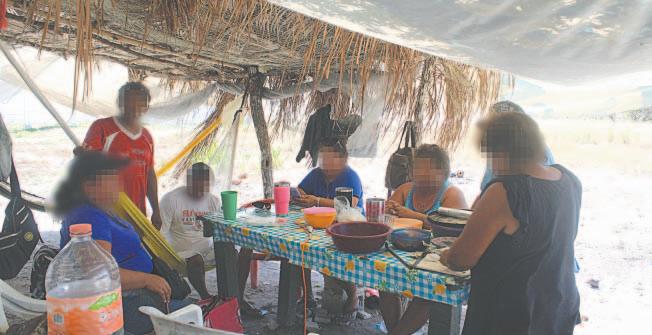 nes se resguardan del Sol bajo los árboles y duermen sobre cartones.