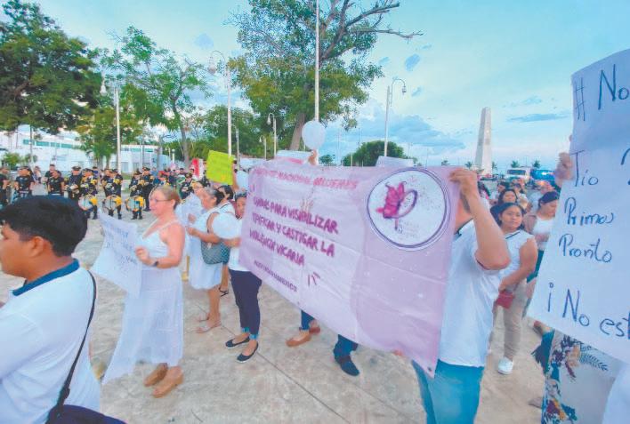 EL grupo feminista organizó una marcha en apoyo a Lizbeth Monserrat Souza Palomino, a quien le arrebataron a su pequeño, la Diputada Elda Xix y su hijo.- (Abraham Cohuó)