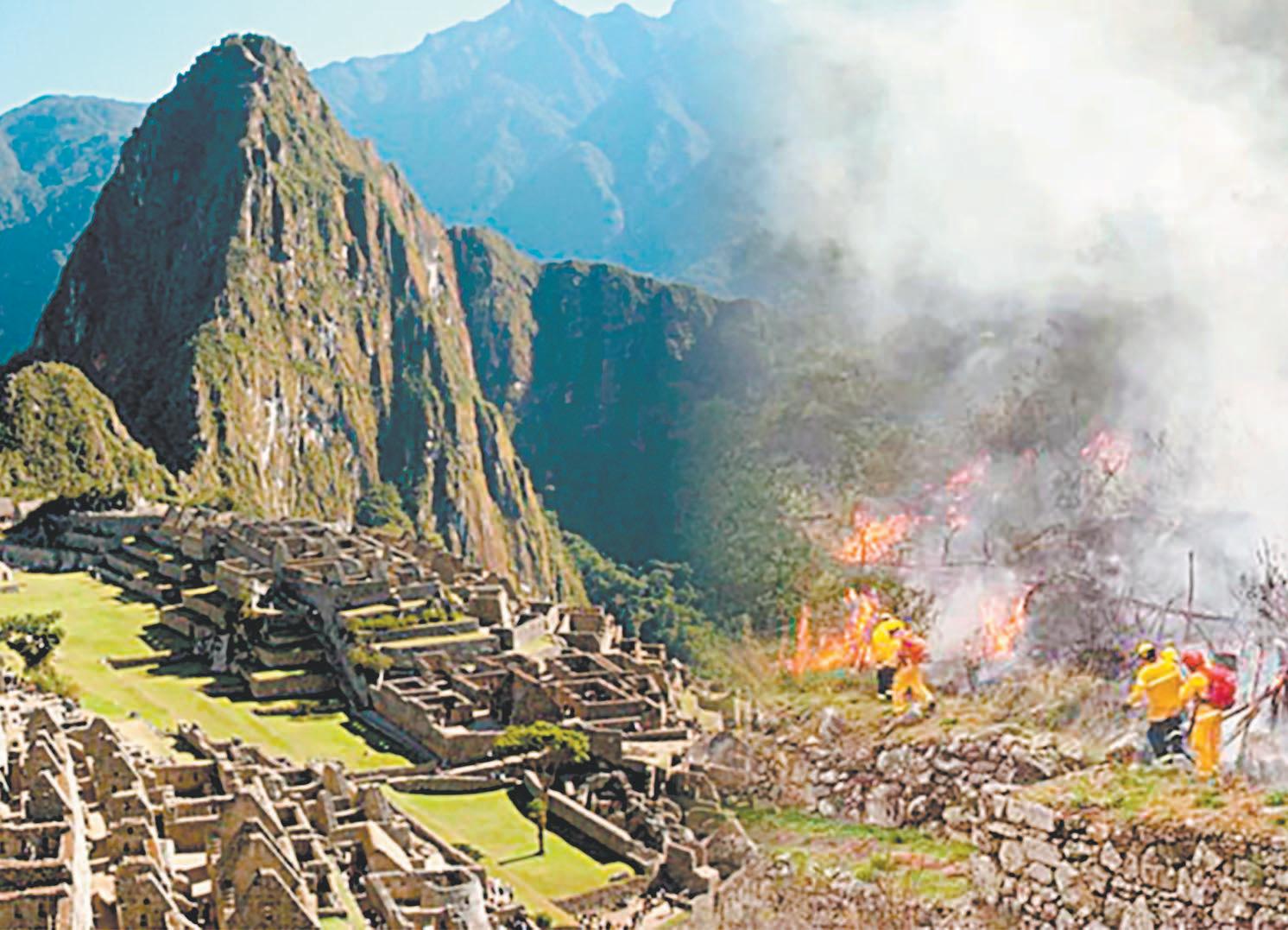 El fuego inició el martes y se centró en una aldea llamada Ccollpani, que pertenece al área de amortiguamiento que rodea al santuario histórico inca más visitado por el turismo