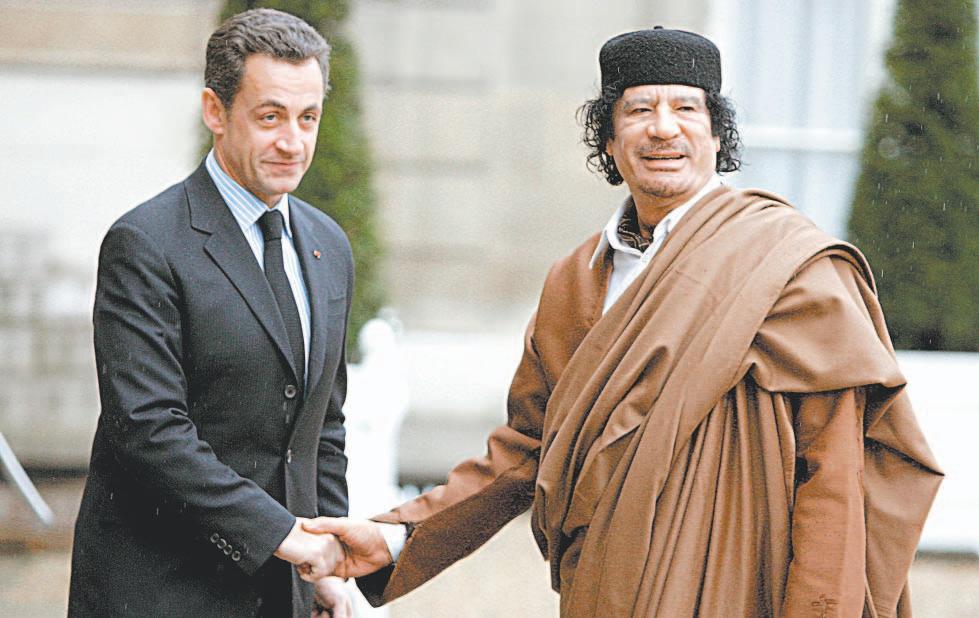 Después de convertirse en presidente en 2007, Sarkozy dio la bienvenida a Gadafi en Francia con altos honores ese mismo año. Luego, Sarkozy puso a Francia a la vanguardia de los ataques aéreos liderados por la alianza militar OTAN que ayudaron a los combatientes rebeldes a derrocar al Gobierno de Gadafi en 2011.