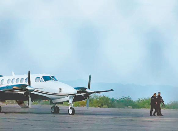 A El Mayo que nunca había caído preso, se le ve con una camiseta azul dentro de un vehículo y puesto el cinturón de seguridad, mientras Guzmán López aparece custodiado por agentes en una pista de aterrizaje.