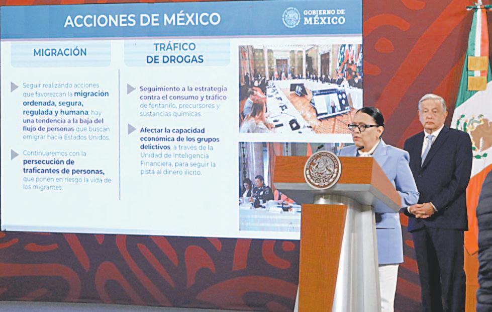 México, Estados Unidos y Canadá acordaron reforzar la detección electrónica de las armas de fuego incautadas en nuestro país a las organizaciones criminales, así como fortalecer las acciones para cortar las cadenas de suministro y evitar el tráfico y consumo, aseguró ayer la secretaria de Seguridad Pública y Protección Ciudadana, Rosa Icela Rodríguez, durante la conferencia matutina del presidente Andrés Manuel López Obrador, en el Palacio Nacional. En el Salón Tesorería, la funcionaria federal indicó que, como resultado de las reuniones bilateral y trilateral entre los tres países, los esfuerzos también se centran en afectar la capacidad económica de los grupos delictivos, mediante la Unidad de Inteligencia Financiera (UIF), y así seguir la pista al dinero ilícito.