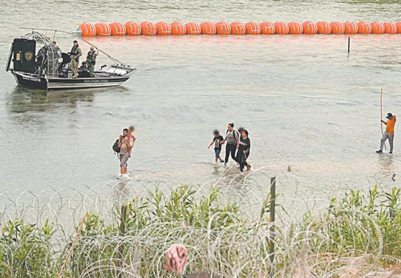con navajas y a la barrera de boyas en el río Bravo, colocadas por el Gobernador de Texas en la zona fronteriza de Eagle Pass.