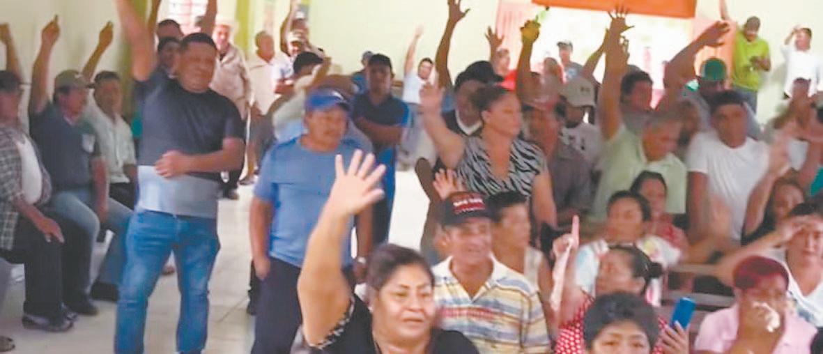 LOS comuneros señalaron al Comisario Alan Daniel Reyes Macías, en contubernio con funcionarios de la Procuraduría Agraria, de querer sacarlos del padrón.- (A. Cohuó)Chetumal, Q. Roo, jueves 27 de julio del 2023