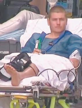 El hombre remó sobre su tabla al menos 600 metros hasta la orilla, sangrando abundantemente, antes de ser ayudado por una enfermera, y luego llevado a toda prisa al hospital, según informó 9News ayer.