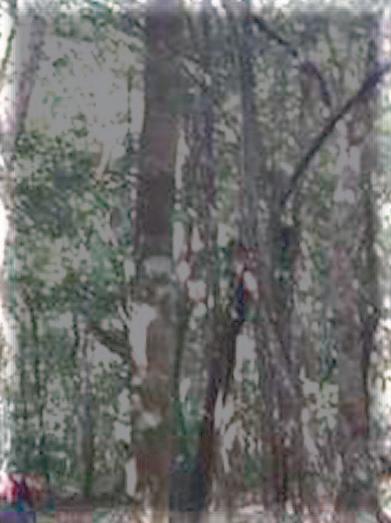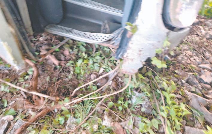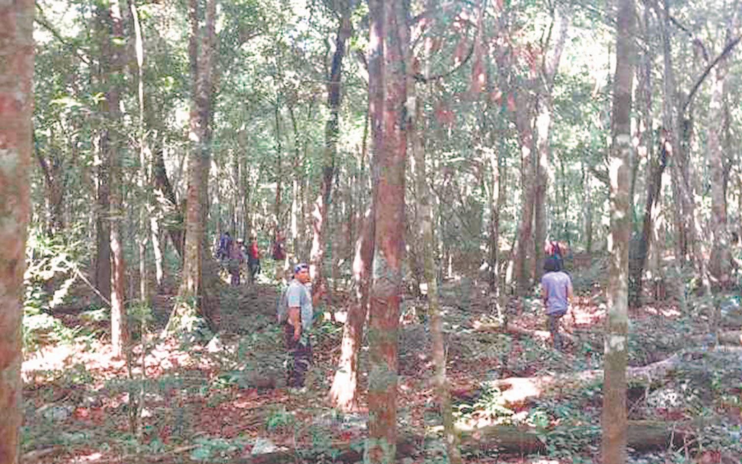 Fotos tomadas en el lugar revelan al árbol derribado, con cortes cerca de la base del tronco.