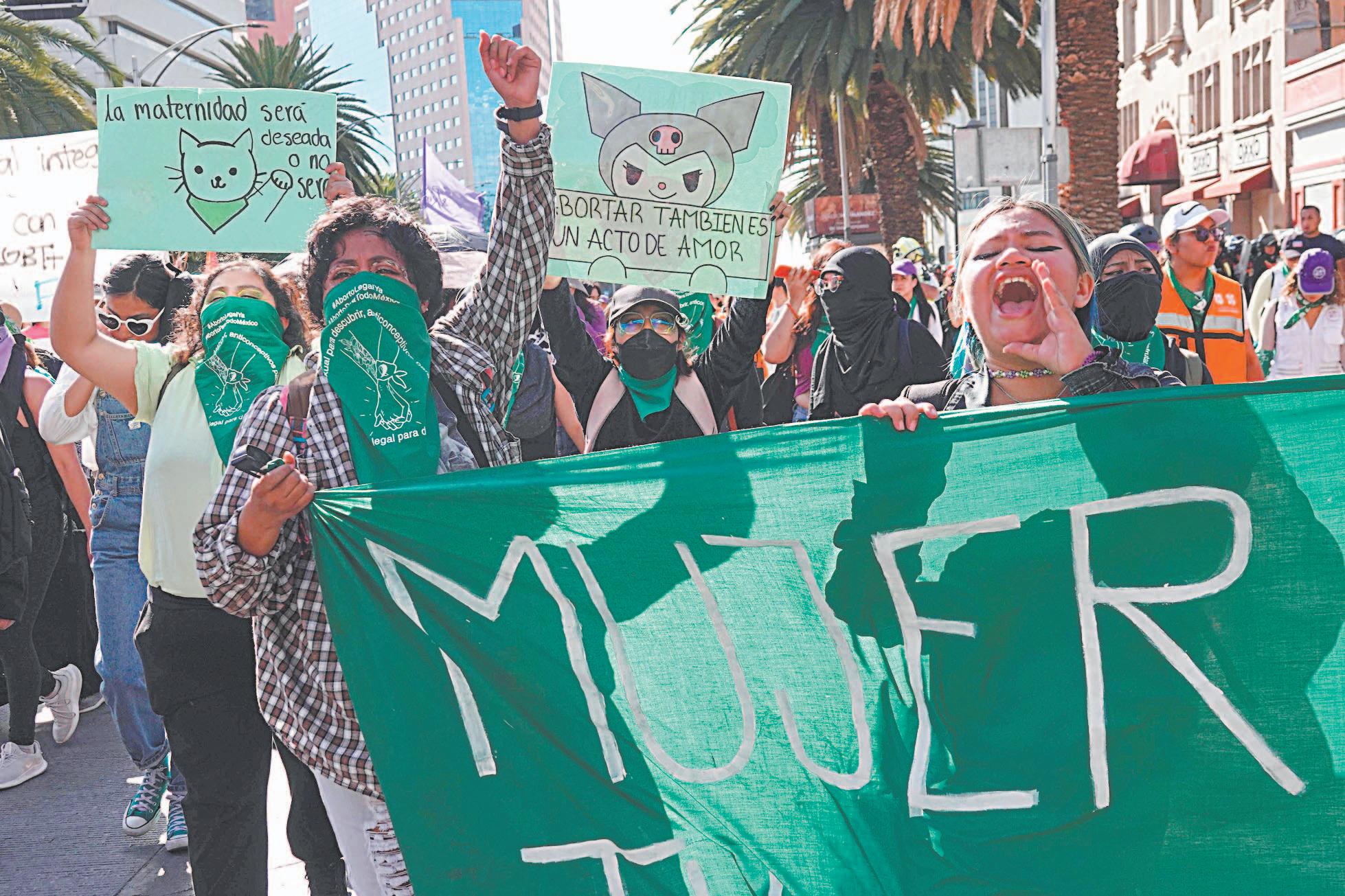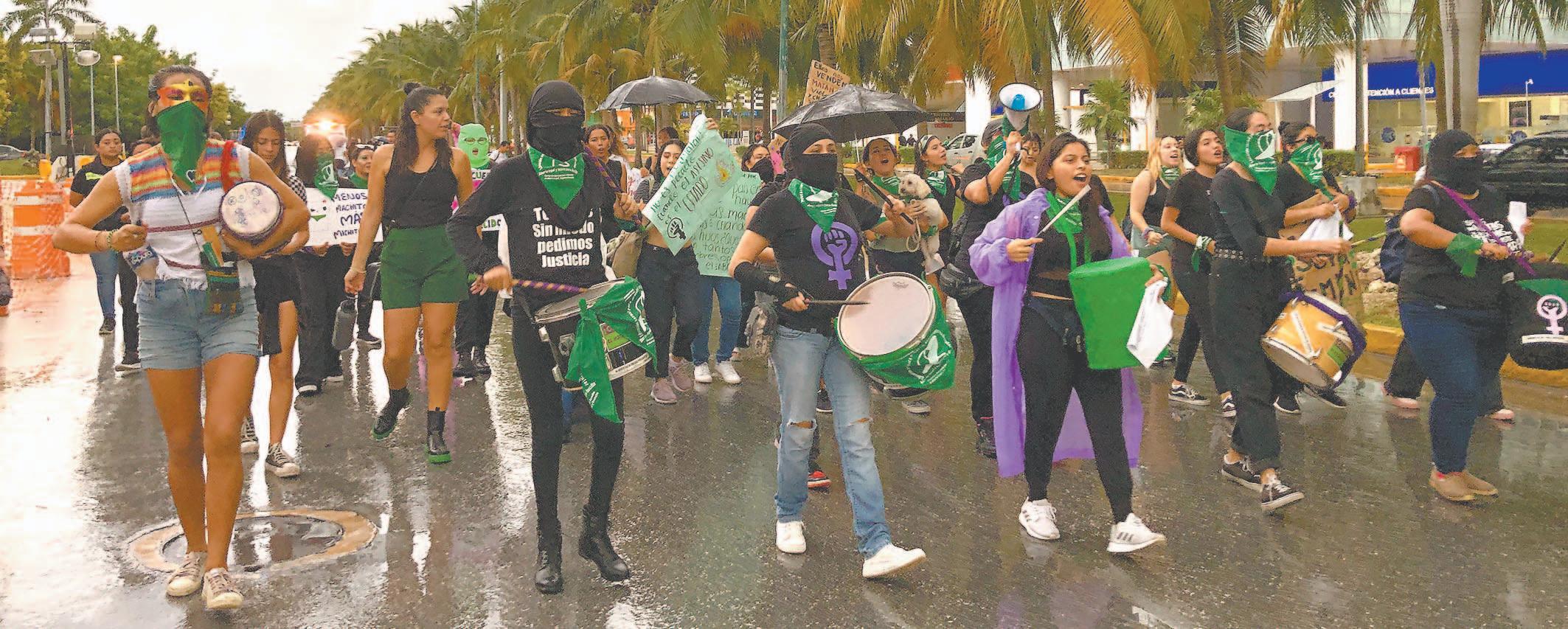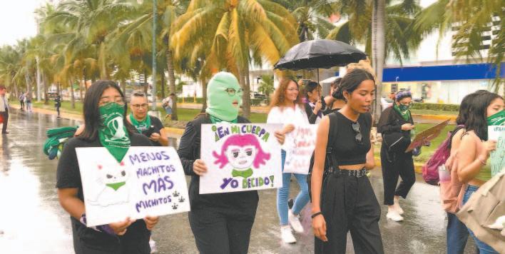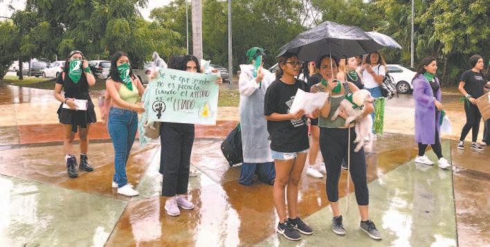 ALREDEDOR de 100 mujeres acudieron a la explanada del Museo de la Cultura Maya. En Q. Roo se aprobó la interrupción del embarazo el 26 de octubre del 2022.- (Isidro Sánchez)