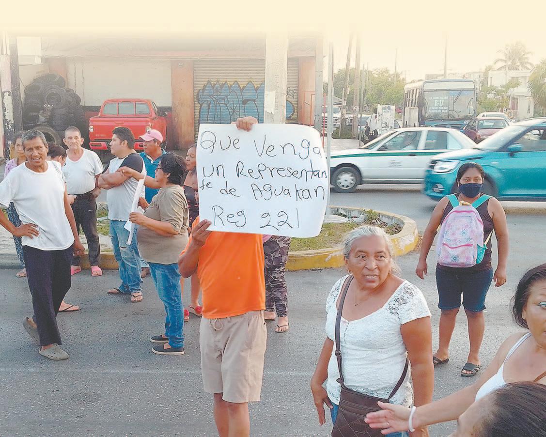 30 DE JUNIO Manifestantes afuera de Aguakan exigen solucionar el problema o bloquearán la Zona Hotelera.