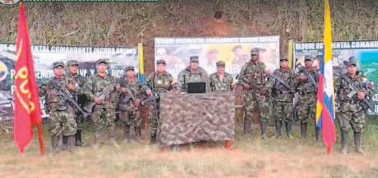 por el grueso de la entonces FARC. El comandante Andrés Patiño del denominado Estado Mayor Central (EMC) anunció también la medida en un video difundido en las redes de la organización, acompañado de una decena de hombres armados con fusiles y vestidos de camuflaje.