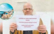 Akis Tselentis, publicó ayer en Facebook una foto suya con el cartel: “Culpable de la broma del pescado de abril ”.
