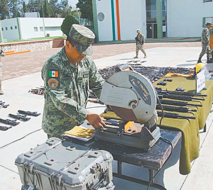 EL SABINO, Chis.- Elementos de la Secretaría de la Defensa Nacional (Sedena) efectuaron la destrucción de armamento y sus accesorios en El Sabino, con un total de 550 armas de diferentes características y calibres, de las cuales, 299 son largas y 251 cortas, 662 cargadores y 52 mil 397 cartuchos. (Cuartoscuro)