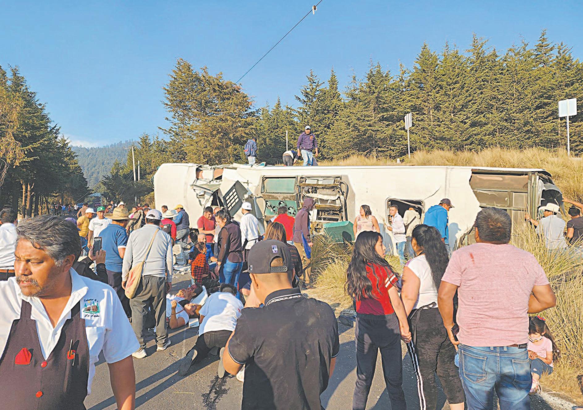 El fatal accidente ocurrió ayer por la tarde en la carretera México-La Marquesa en el km 34.5 en el Valle Turimex, en la desviación a Chalma, cuando el operador del autobús de la empresa Flecha Roja, con número económico 202, perdió el control hasta salir de la cinta asfáltica.