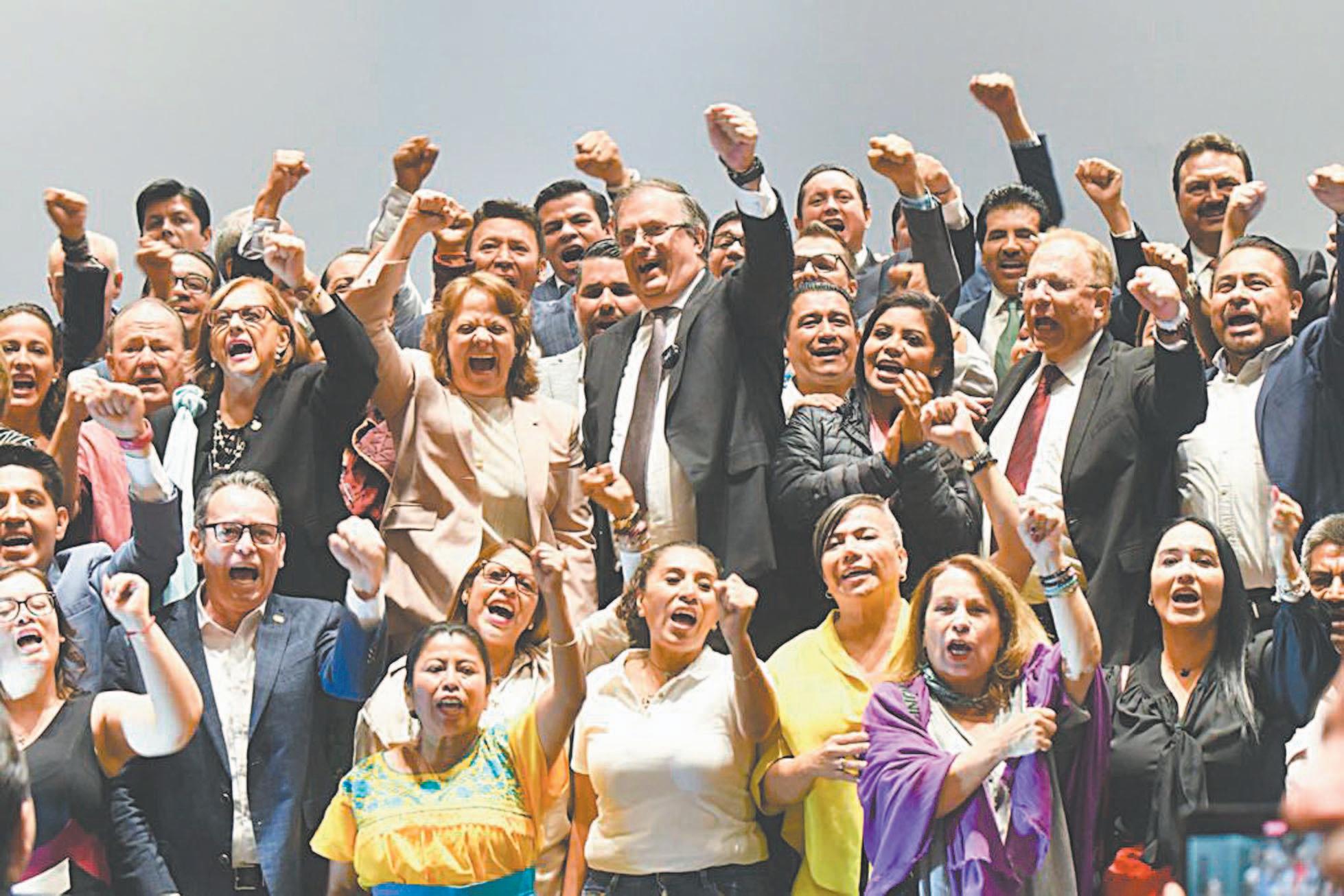 Durante el anuncio de su renuncia, el funcionario federal estuvo acompañado por presidentes municipales, así como diputados, senadores y colaboradores cercanos a él, quienes lo vitorearon con gritos de “¡Marcelo, Marcelo!”.