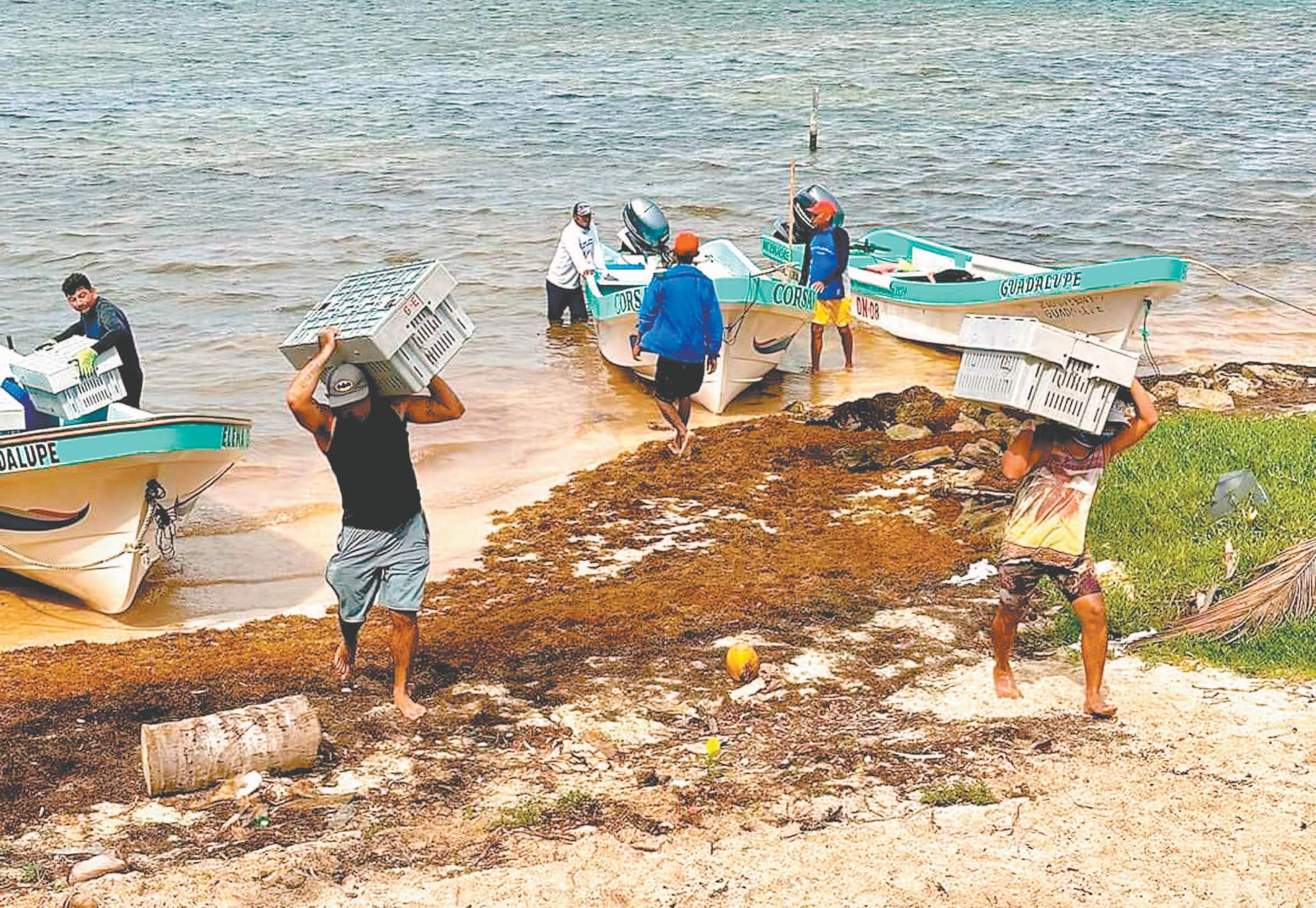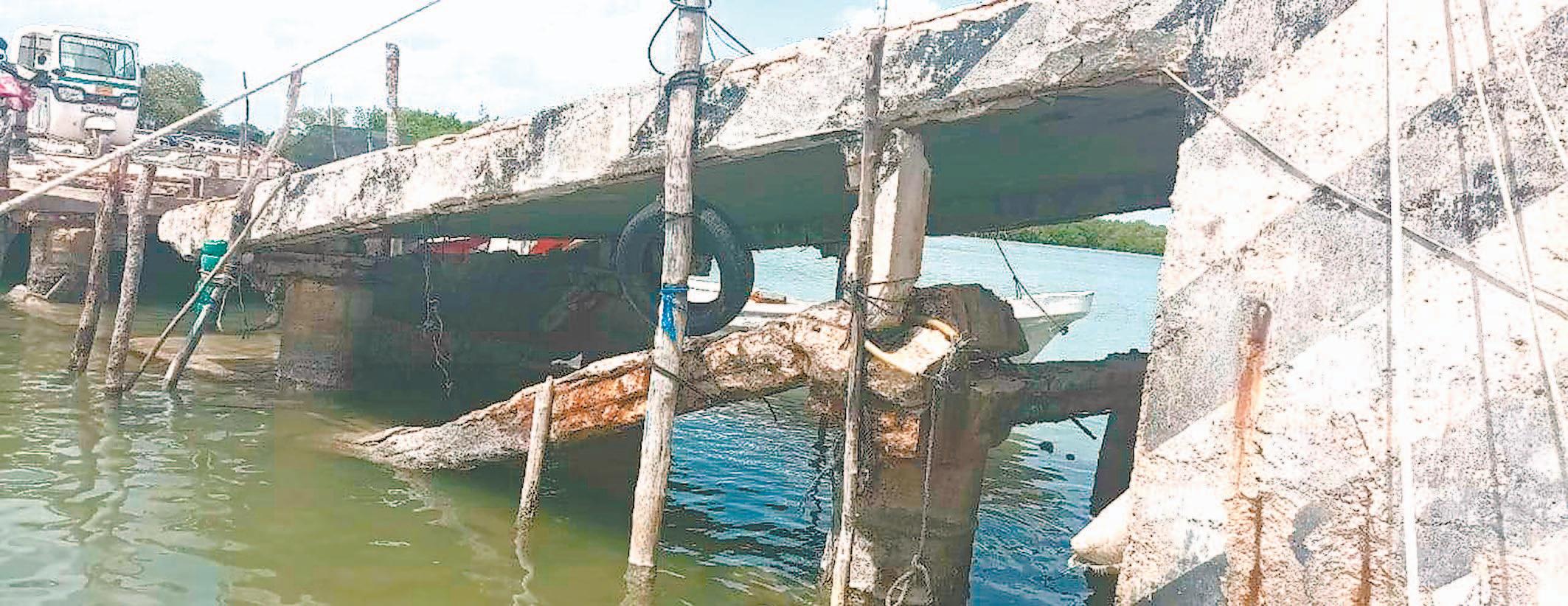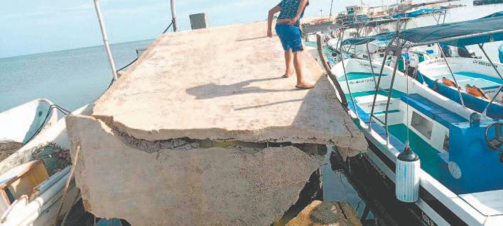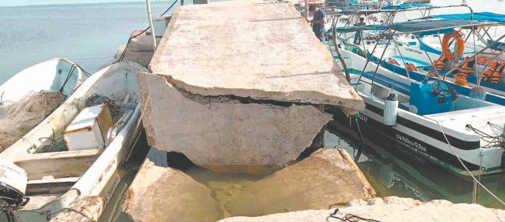 un derrumbe que abarcó 15 m y que entorpece los trabajos de los hombres de mar a la hora de descargar lo capturado.- (L. E. Cauich)
