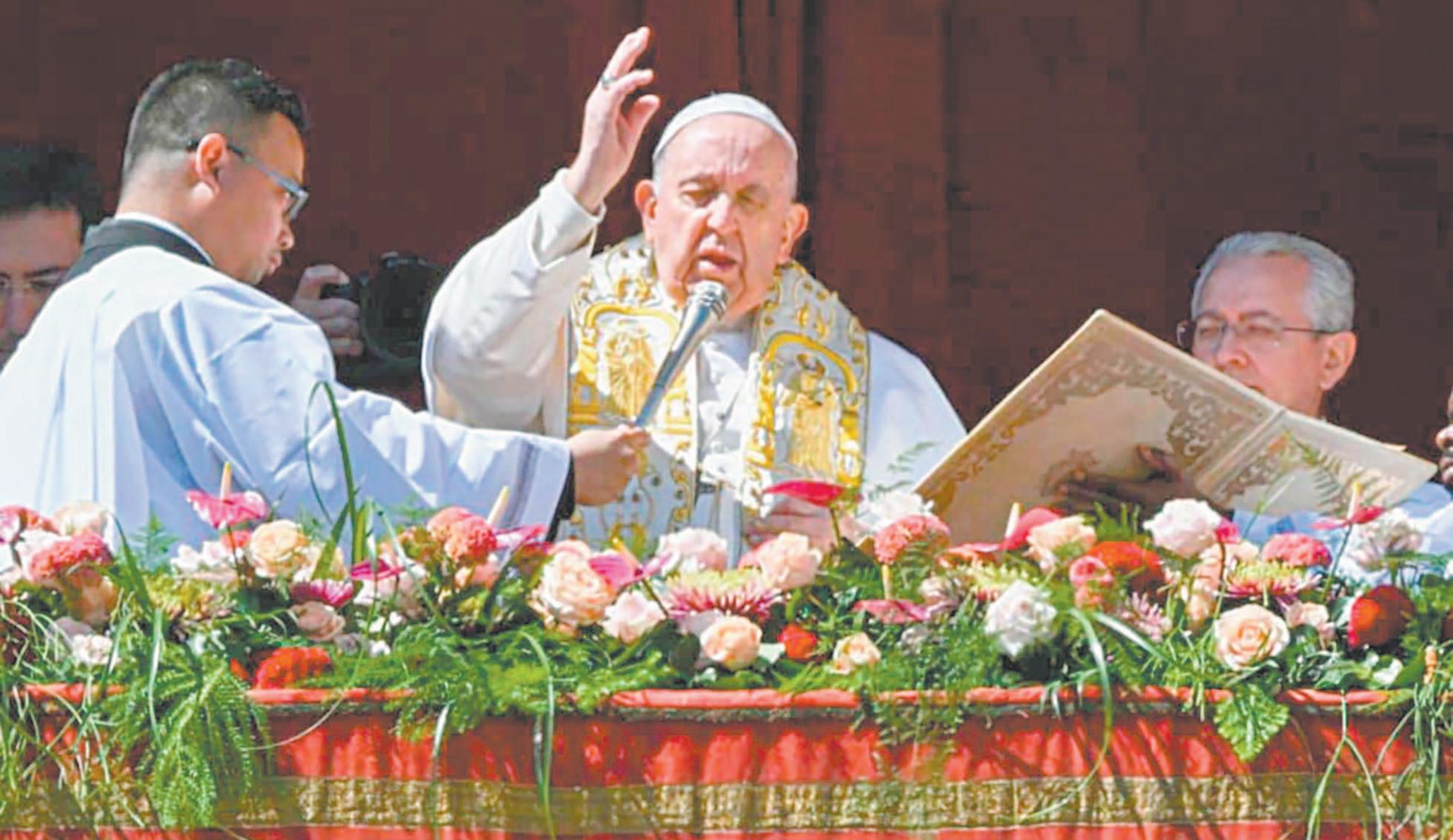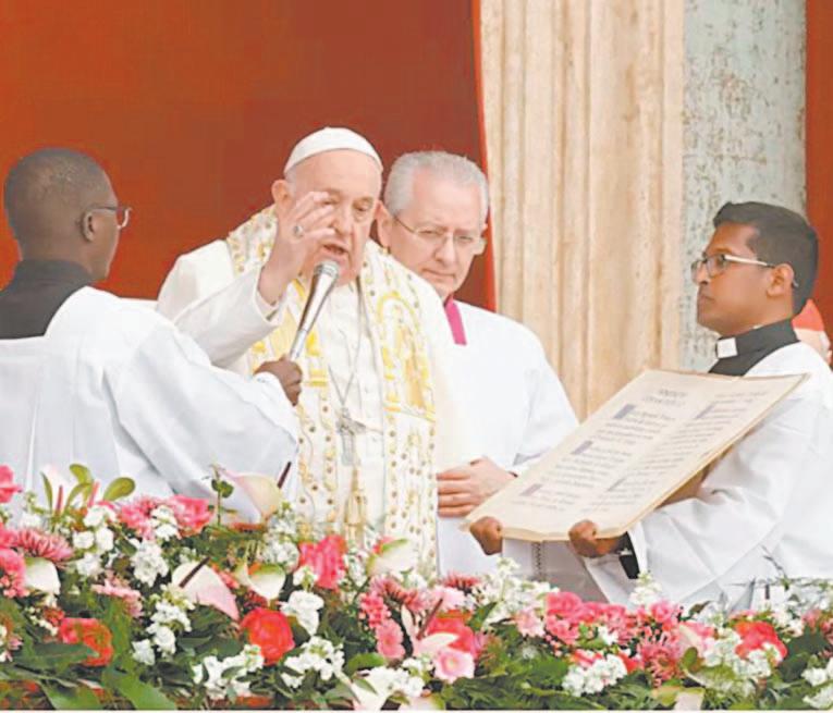 NO.- Desde la logia central de la basílica de San Pedro para la bendición Urbi et Orbi , y ante 60 mil personas que abarrotaron el bulevar de la Via della Conciliazione , Francisco pronunció su mensaje de Pascua en el que evocó a las víctimas de tantos conflictos que están en curso en el mundo y pidió que “Cristo resucitado abra un camino de paz”.