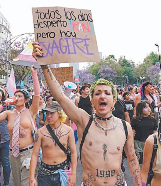 hay muchísimas personas divulgando discursos de odio incluso desde el mismo Congreso mexicano“, dijo a la artista plástica Azul Picone. Exhortó a las candidatas presidenciales, Claudia Sheinbaum, de Morena, PT y PVEM, y Xóchitl Gálvez, del PAN, PRI y PRD a que hagan un esfuerzo mayúsculo en resaltar y defender los derechos humanos no solo de personas trans, sino de otras disidencias y minorías. En la marcha, algunos activistas de la diversidad sexual pintaron secciones de las calles del Centro de la capital mexicana con los colores de la bandera trans: azul, rosa y blanco. (Agencias)