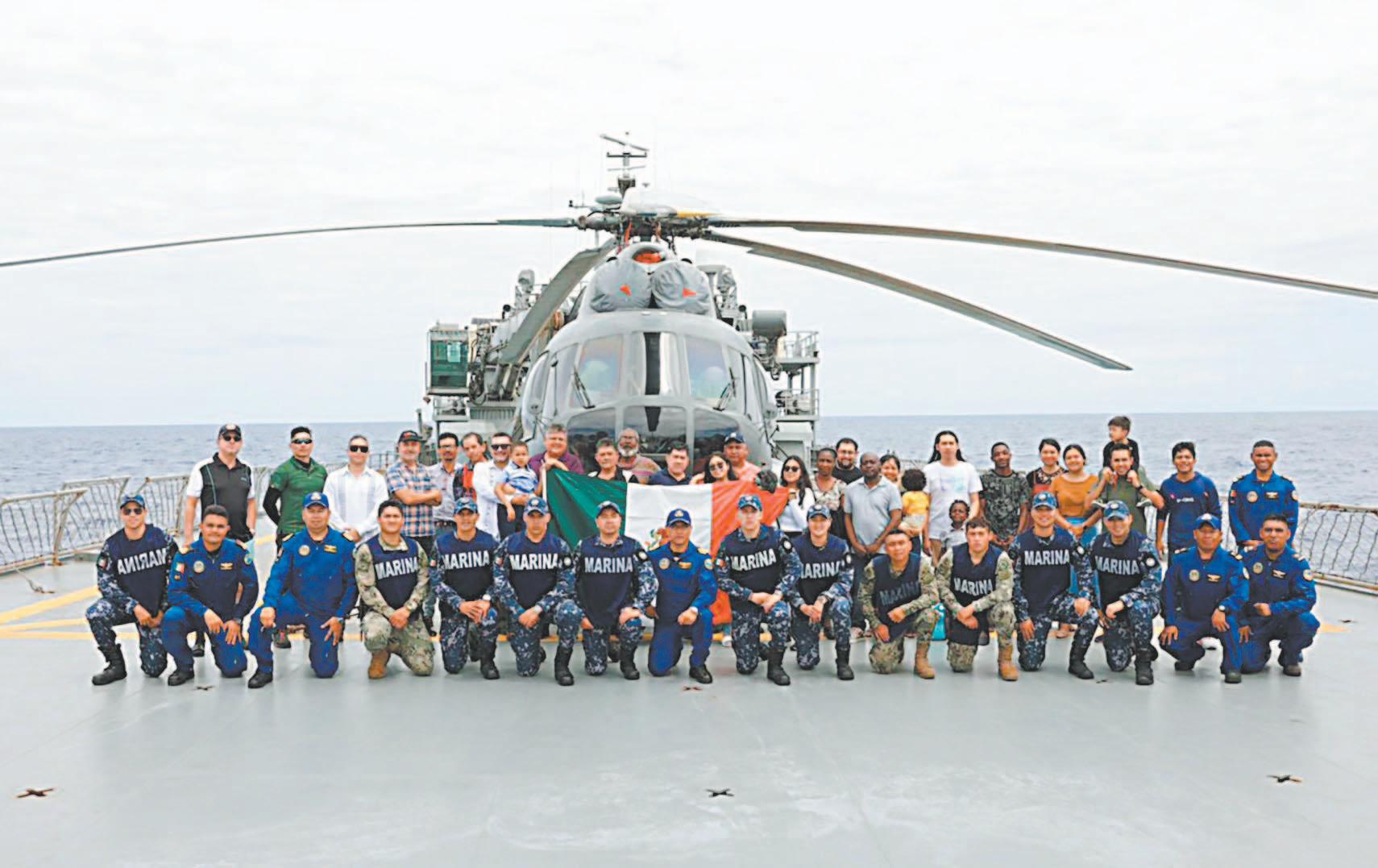 Además, compartió una fotografía en la que se pueden ver a los connacionales junto efectivos de la Marina, sosteniendo una bandera nacional y frente a un helicóptero.