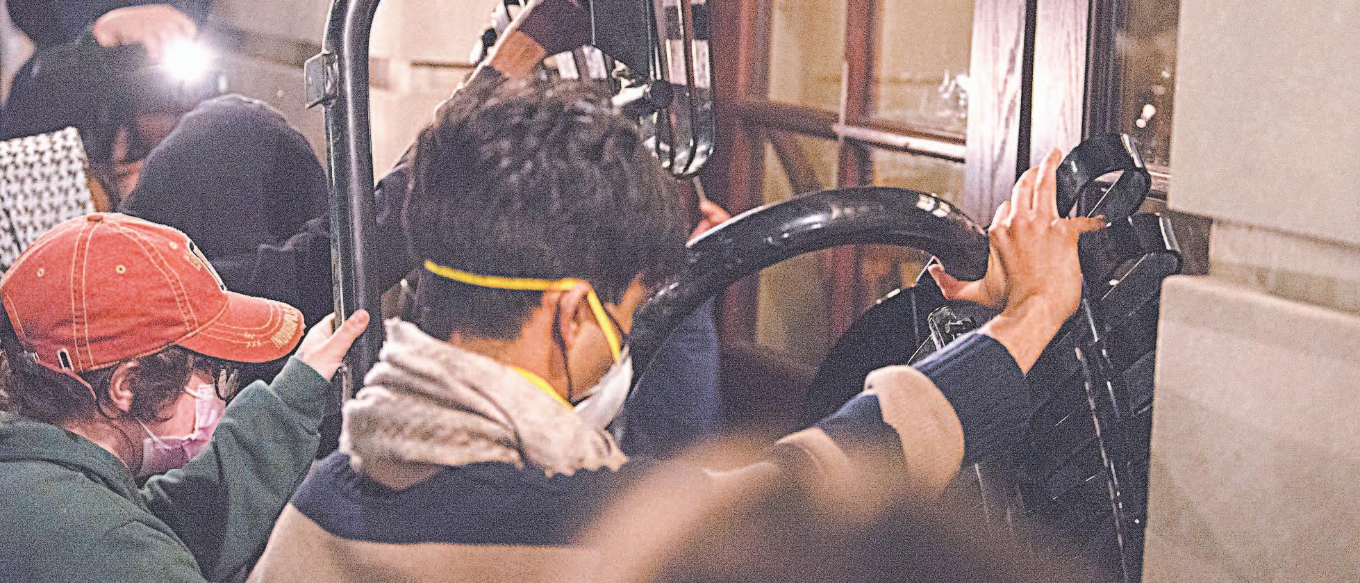 La escena se desarrolló poco después de las 9 de la noche, cuando la Policía, portando cascos y cinchos, así como escudos antidisturbios, se congregaron en la entrada de la prestigiosa universidad. Los agentes ingresaron al Hamilton Hall, un edificio administrativo en el campus, para desalojarlo.
