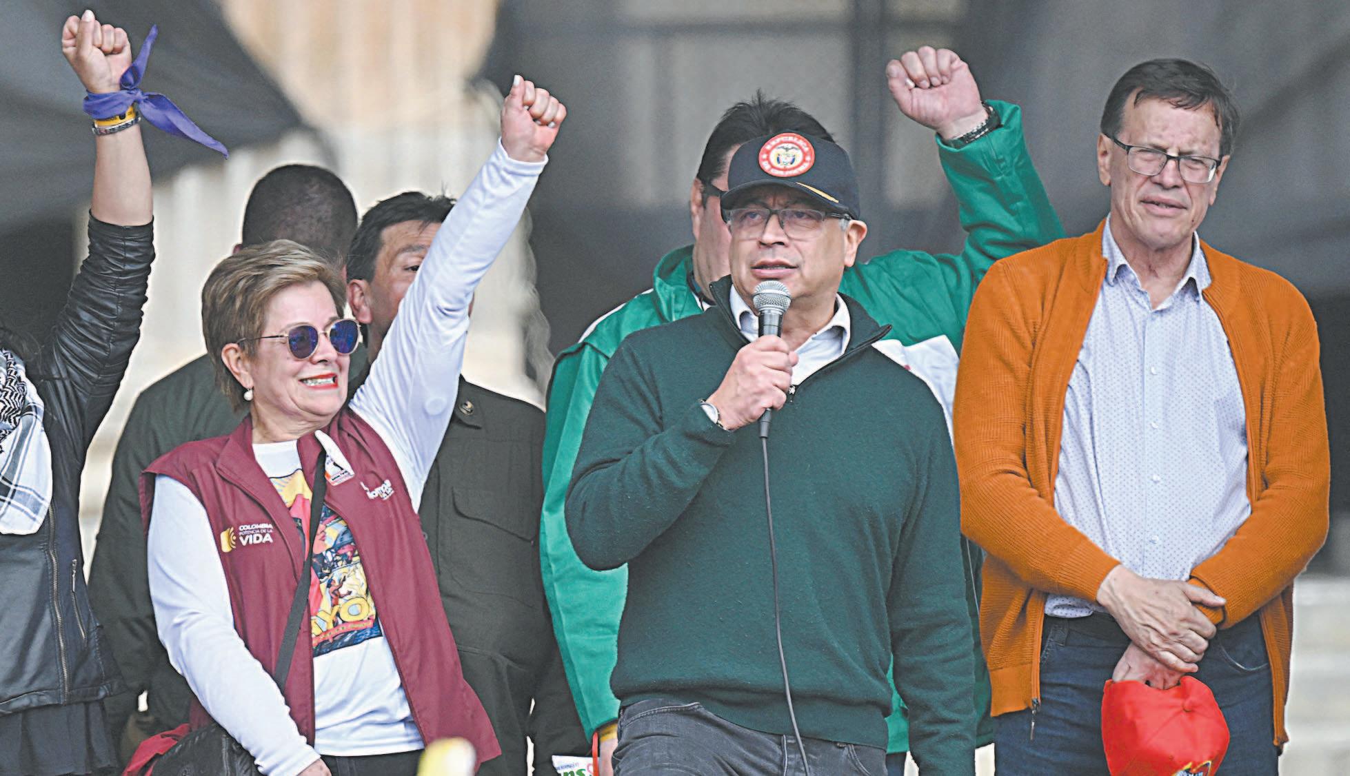 nacional contra su antecesor, Iván Duque, que Petro supo capitalizar y que infl uyó en su elección como presidente en el 2022. Pero ahora, cuando el cuestionado es él, su posición es la opuesta. La sabiduría popular dice que el cura nunca de acuerda de cuando fue sacristán. Algunos de sus más cercanos colaboradores reaccionaron en forma contraria: Laura Saravia, su mano derecha, dijo: “Hoy debemos tener la grandeza de reconocer que muchas personas se movilizaron, que lo hicieron con todas las garantías y pudieron expresar su descontento. Esta es una semana que como gobierno debemos afrontar en reflexión y autocrítica”. El ministro del interior, por su parte se mostró conciliador: “Debemos hacer reflexiones sobre en dónde estamos acertando, con quiénes hemos hablado, con quiénes no”. Y el senador Iván Cepeda, su