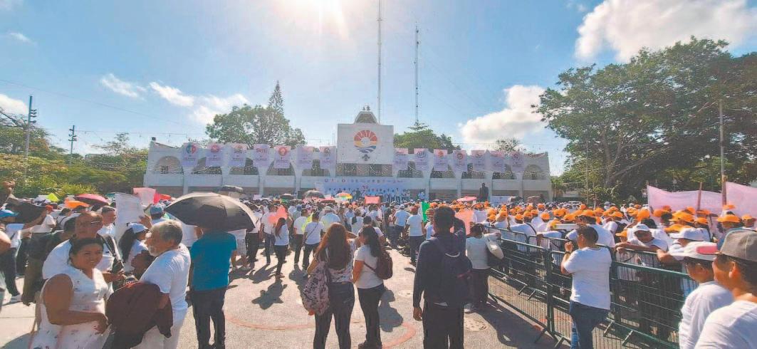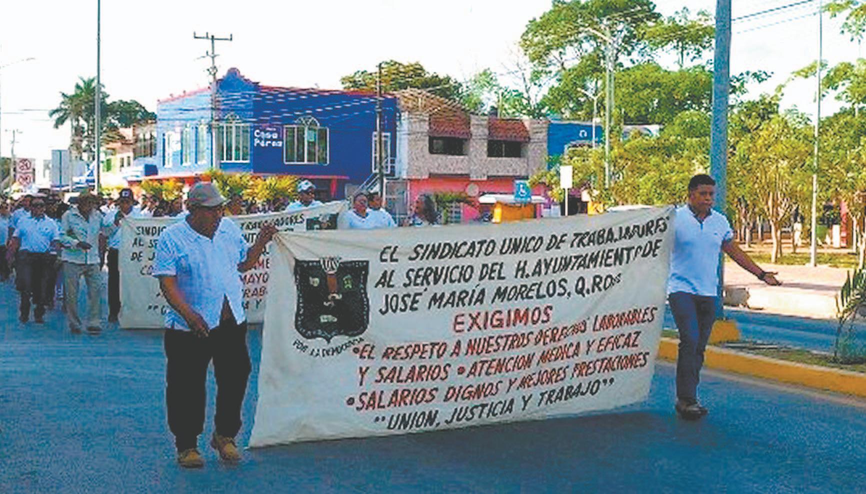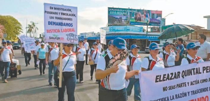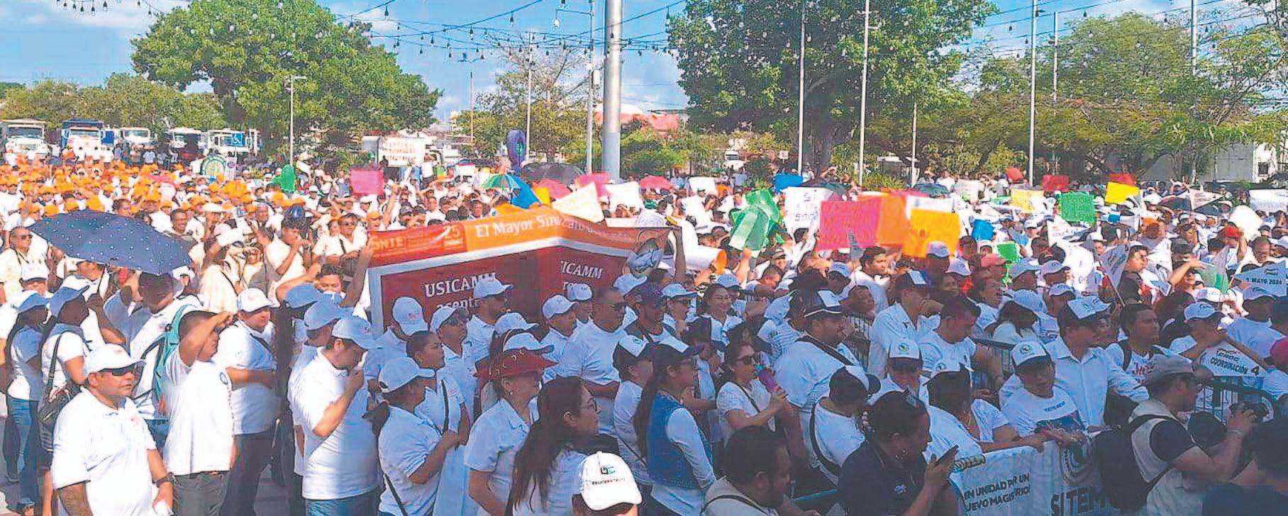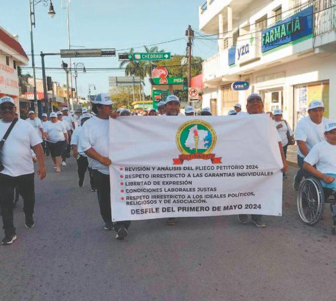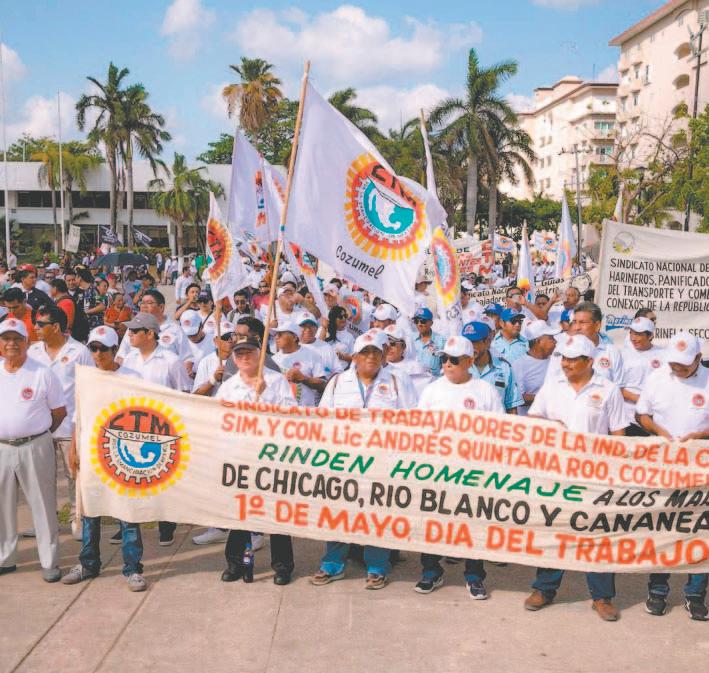 Sindicalizados ejercen su libertad a manifestarse en Chetumal, en el marco de la conmemoración del Día del Trabajo, pese al intento del Gobierno Estatal para evitarlo; con pancartas y gritos, los empleados demandaron respeto a sus derechos laborales / Reinicia la Semar la colocación de barreras antisargazo en Mahahual / Alarma el despliegue policial y militar por la llegada del Director de la PMP al Parque del Queso, en la capital Ciudad 11, 13 y 14
