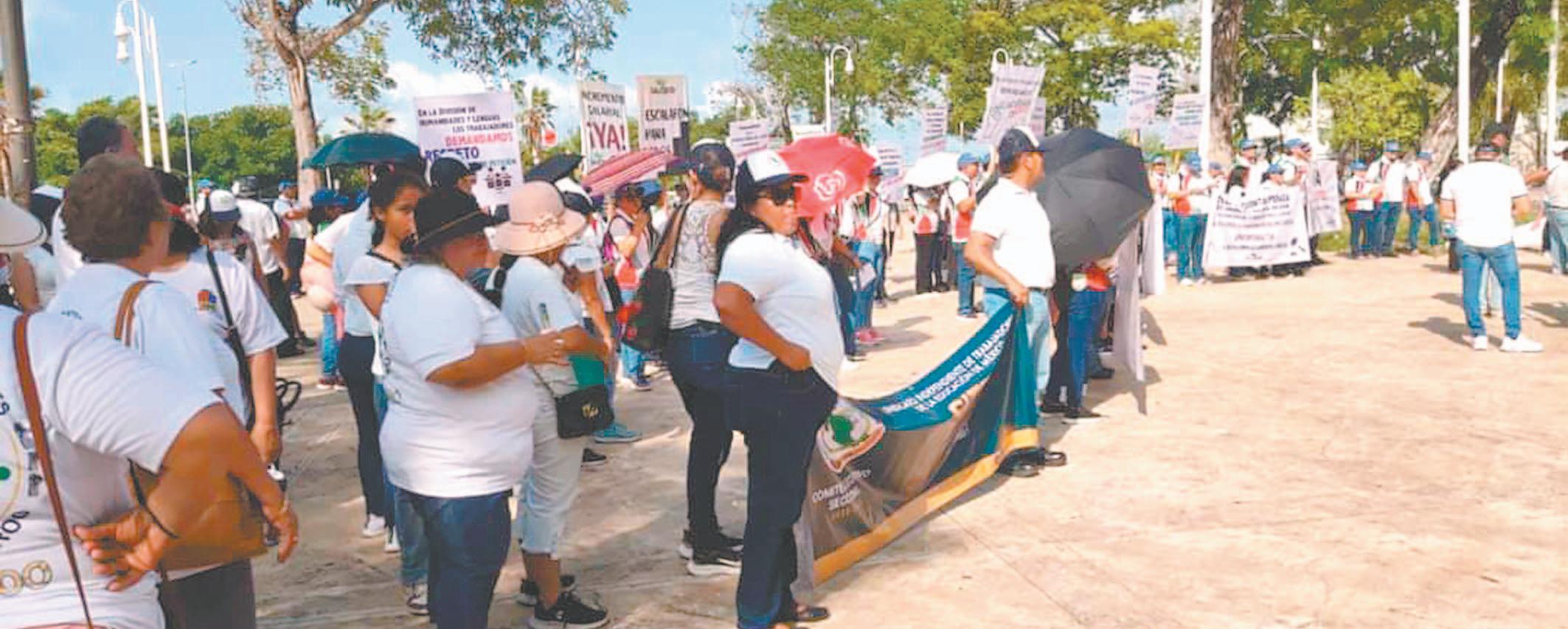 pago de horas extras y condiciones laborales dignas, entre otras, que reafirmaron al llegar al Palacio de Gobierno.- (POR ESTO!)