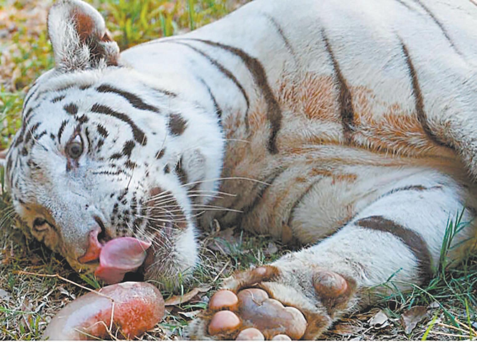 Durante el día, los muros y pisos de cemento de las jaulas y de los recintos se rocían con agua para bajar la temperatura. A los felinos les dan “helados de sangre” elaborados con carne picada de res o pollo, sangre animal y vitaminas.
