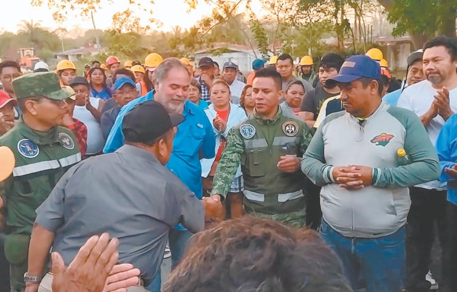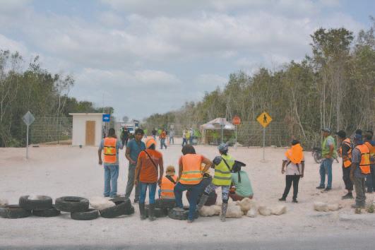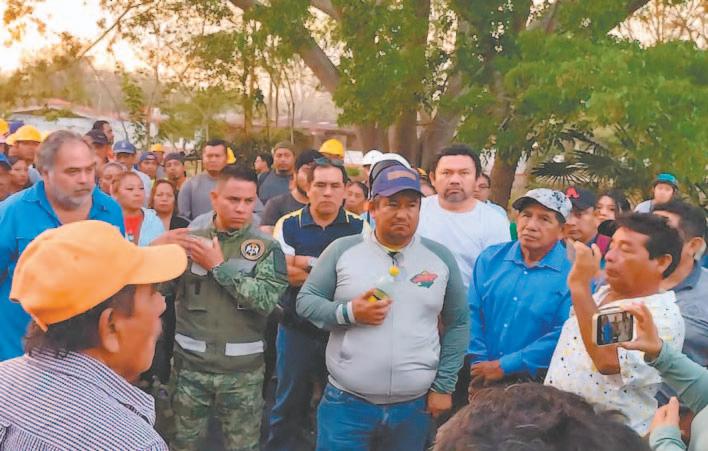 LOS comuneros acusan que la empresa encargada del trabajo no cumplió el acuerdo de comprarles el sascab, que trae desde otra parte para el proyecto.- (Justino Xiu)