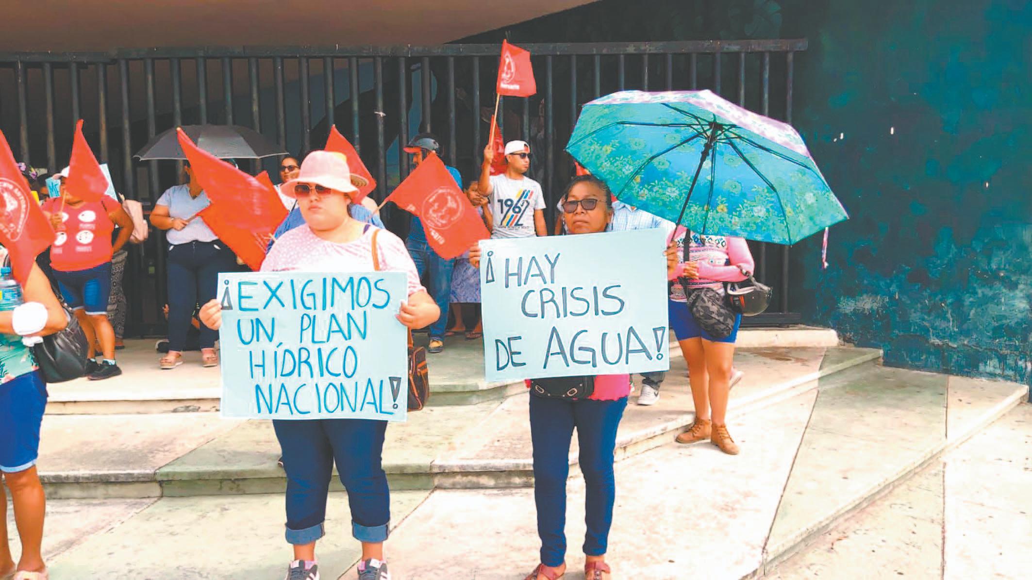 La protesta fue frente al Museo de la Cultura Maya para exigir acceso al agua potable; es parte de las acciones que realiza la organización a nivel nacional.- (Abraham Cohuó)