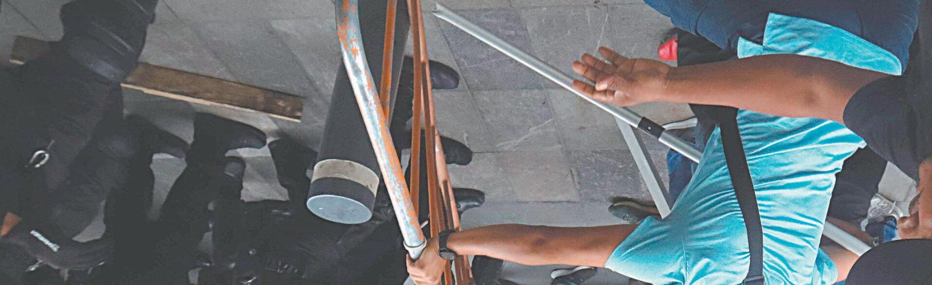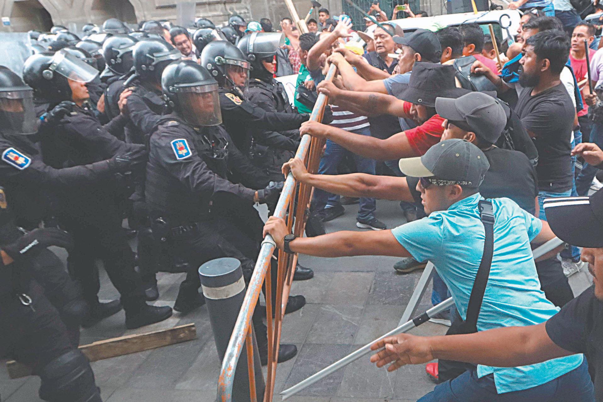 CIUDAD DE MÉXICO.- Maestros de la Coordinadora Nacional de Trabajadores de la Educación (CNTE) se liaron a golpes ayer con elementos de la Secretaría de Seguridad (SSC) de la Ciudad de México en inmediaciones de Palacio Nacional, en donde rompieron vidrios de la puerta de la esquina de Corregidora, frente a la Suprema Corte de Justicia de la Nación (SCJN), acceso que es usado exclusivamente por el presidente Andrés Manuel López Obrador y su familia.