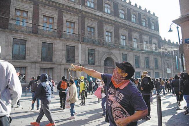 Ayer por la mañana, durante su protesta lanzaron petardos y con una camioneta derribaron una de las puertas de acceso de las instalaciones del Palacio Nacional.